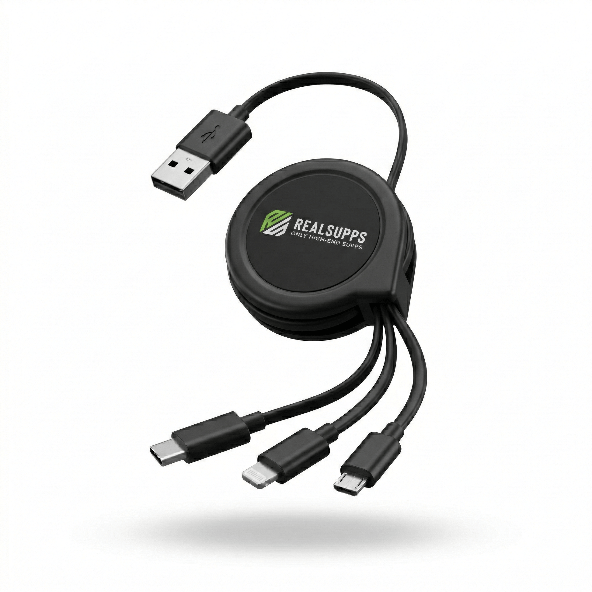 De RealSupps 3 in 1 USB oplader is een compacte kabel met drie verschillende aansluitingen, zodat je meerdere apparaten met één kabel kunt opladen. Ideaal voor onderweg, in de auto of in je sporttas.